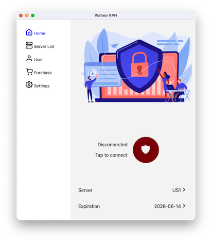 Inicia Wahoo VPN. La aplicación combina inicio de sesión y registro. Elige tu método preferido para continuar.